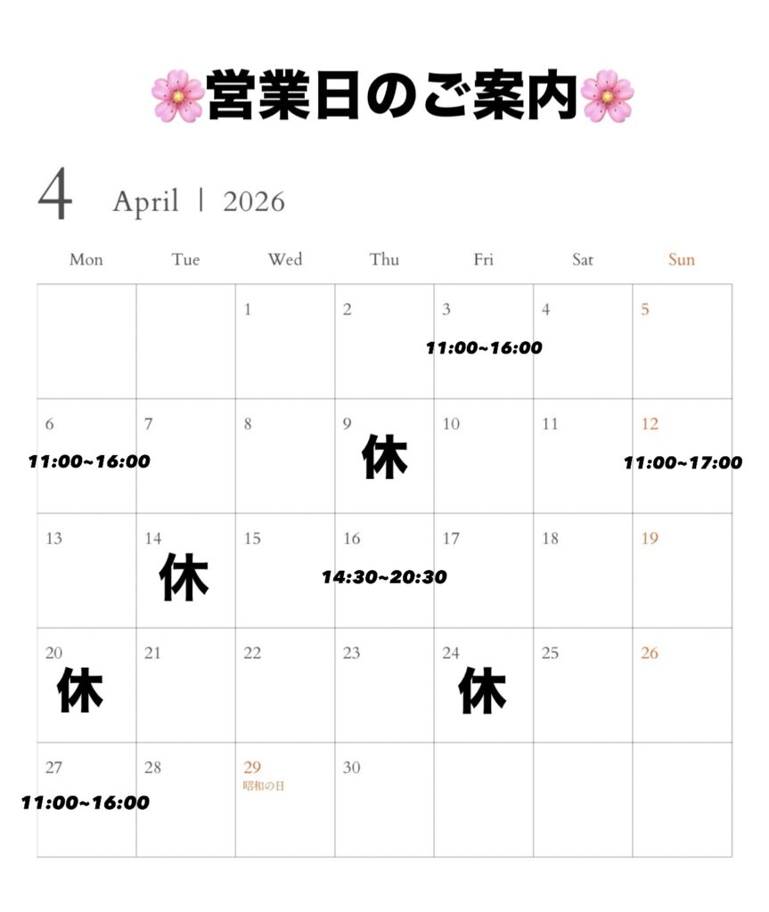 3月の営業日のご案内です