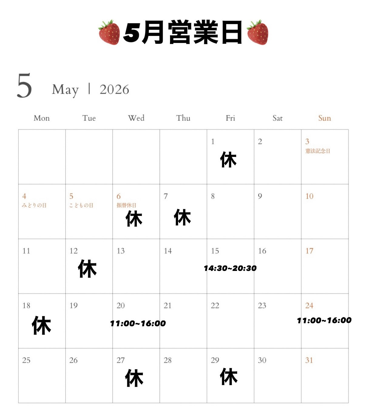 5月の営業日のご案内です